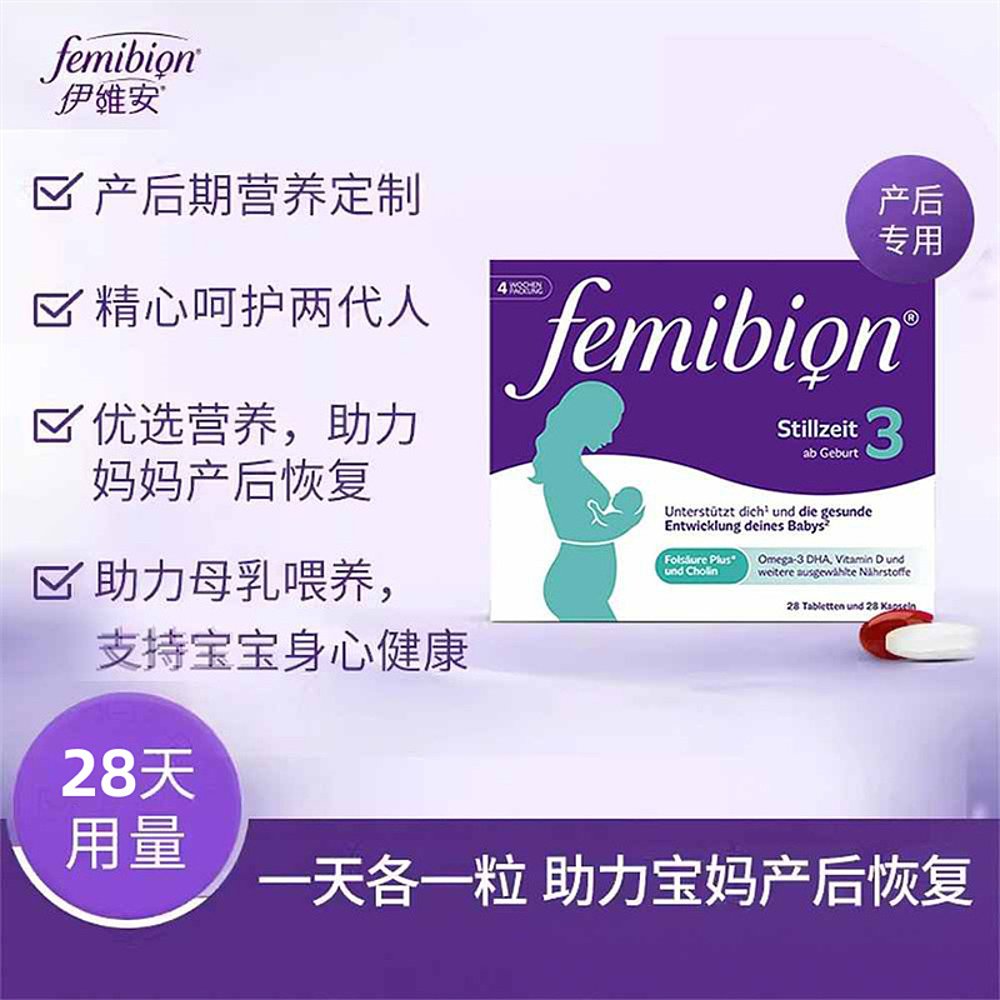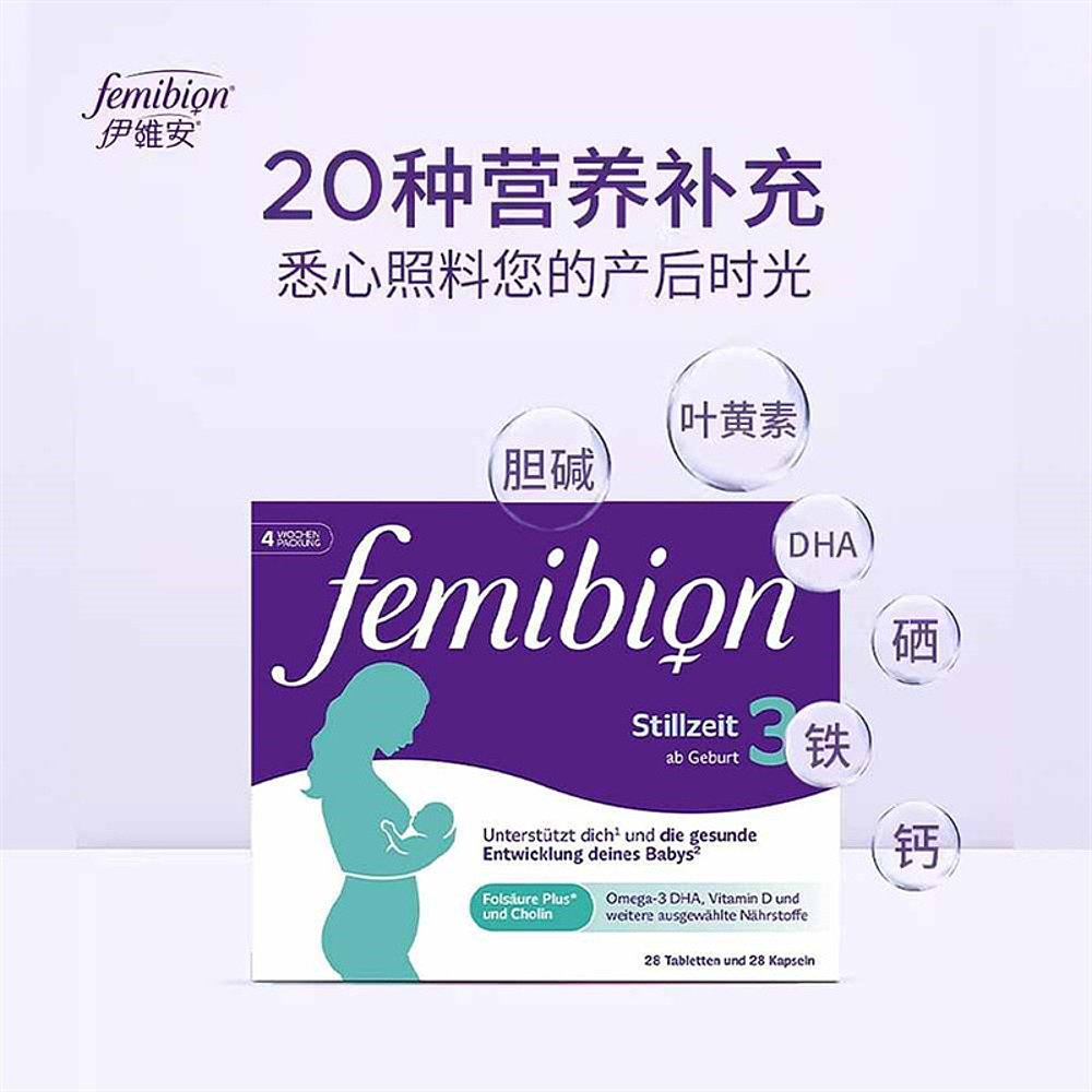 欧洲直邮德国Femibion伊维安3段产后哺乳期妈妈活性叶酸维生素4周