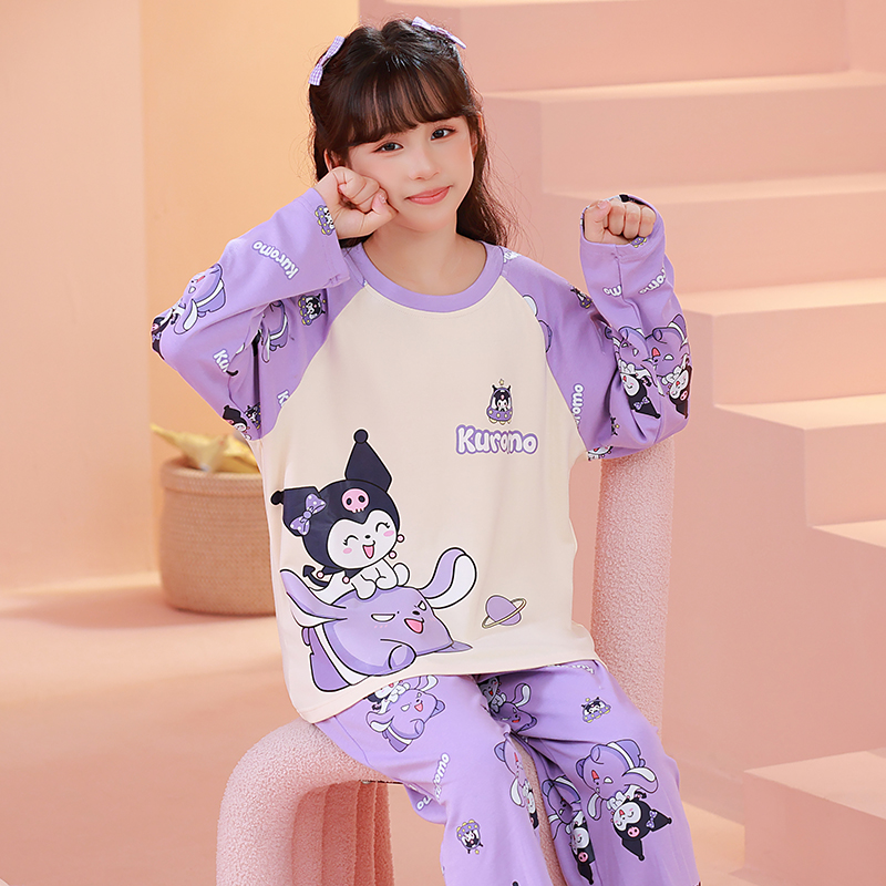 儿童睡衣女孩春秋纯棉长袖薄款2025新款女童卡通蛋仔中大童家居服