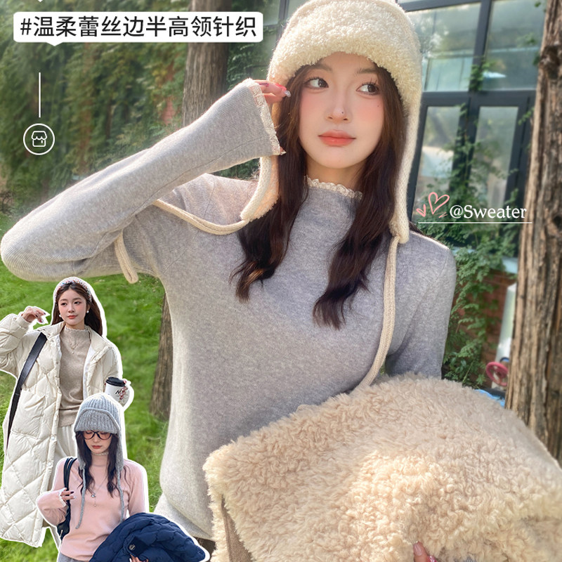 灰色针织打底衫女秋冬季内搭2025新款爆款高级感小上衣半高领毛衣