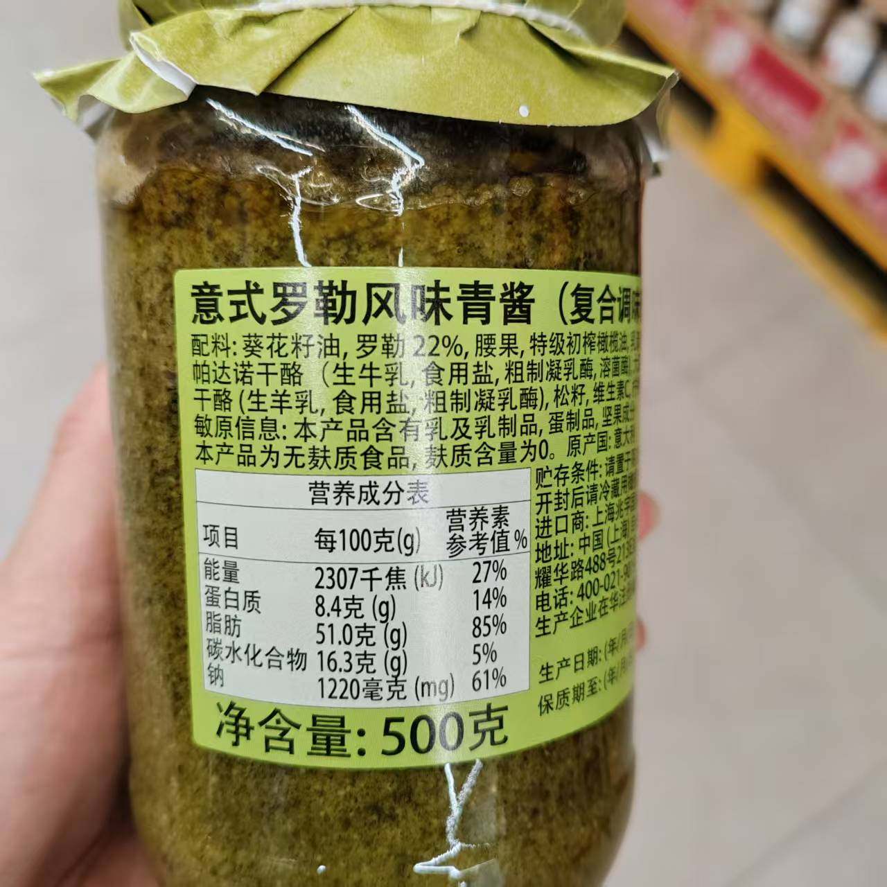 山姆代购Ranise意大利进口意式罗勒青酱意面牛排酱西餐调味料500g