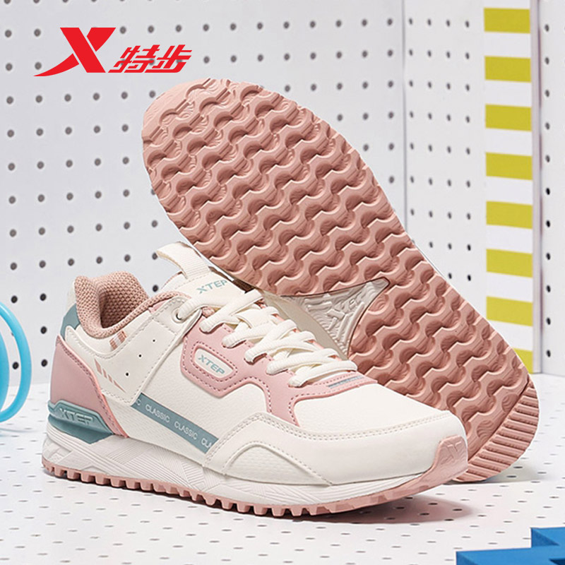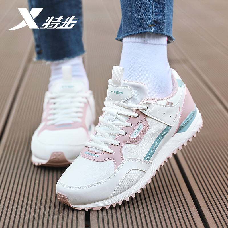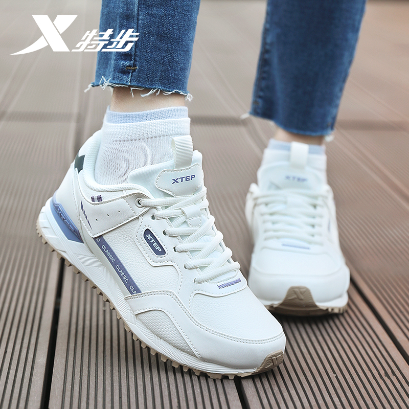 特步女鞋潮流时尚休闲鞋女秋季2025新款皮面防滑跑步鞋轻便运动鞋
