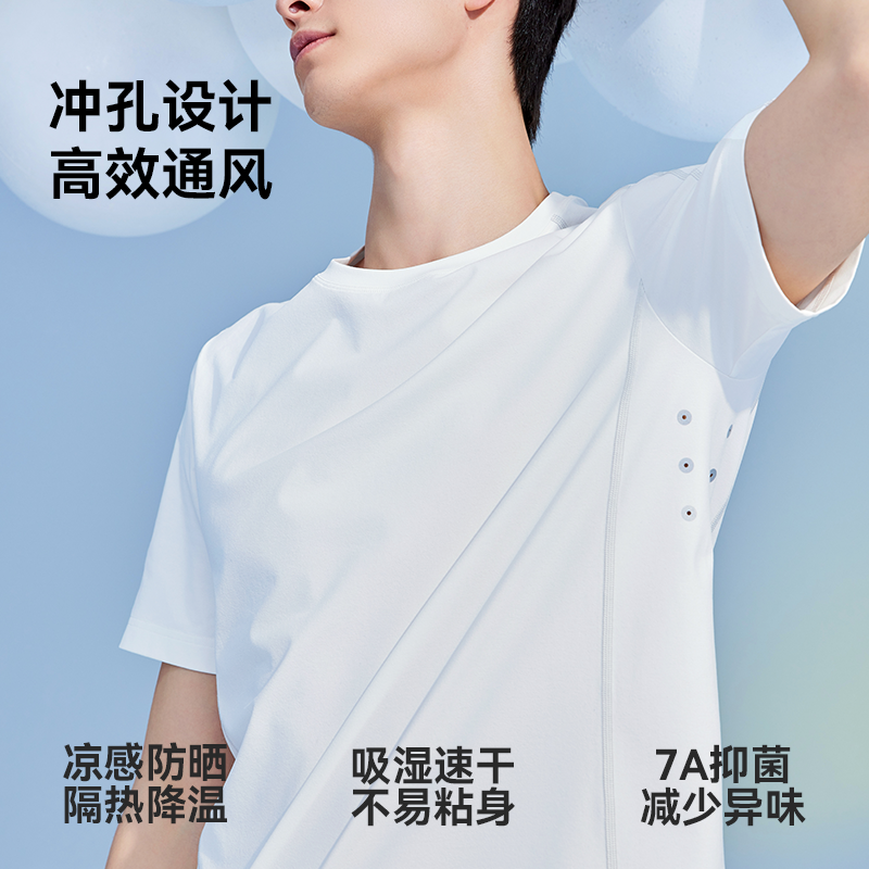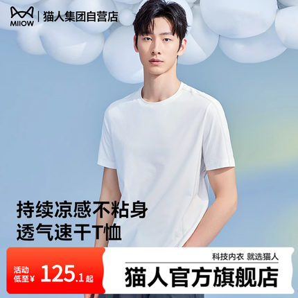 猫人男士短袖T恤夏季2025新款速干透气凉感运动休闲圆领防晒上衣
