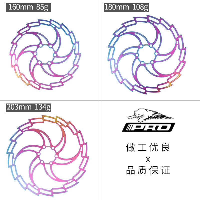 IIIPRO超轻碟片160/180/203MM山地自行车炫彩镂空碟盘六钉刹车片