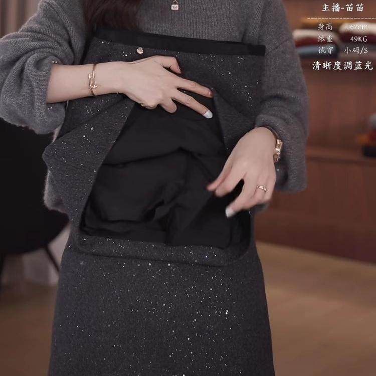 韩系冬季精致闪闪半身裙女百搭洋气A字显瘦包臀裙高级感毛呢短裙