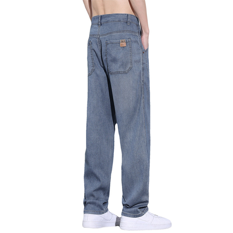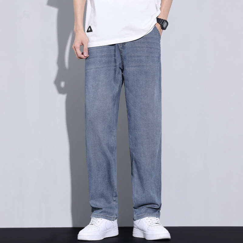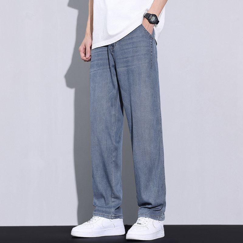 冰丝牛仔裤男款夏季超薄宽松直筒潮牌天丝弹力垂感男士休闲长裤子