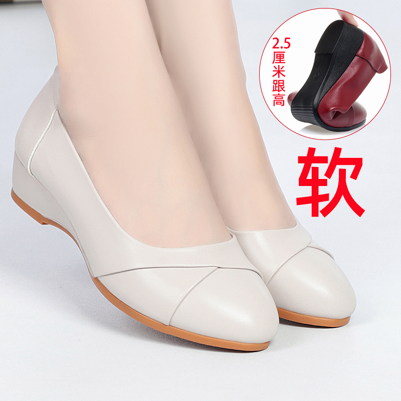 妈妈鞋春秋款软底舒适真皮红色低跟中年女鞋单鞋防滑中老年皮鞋女