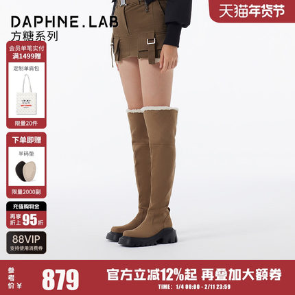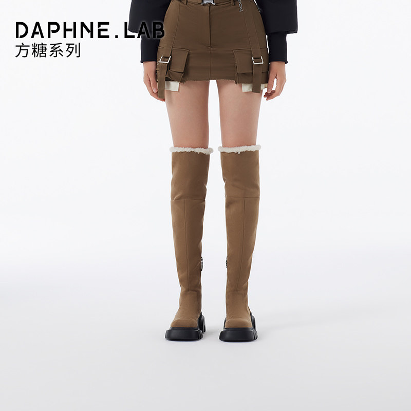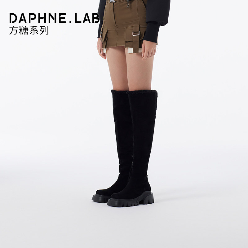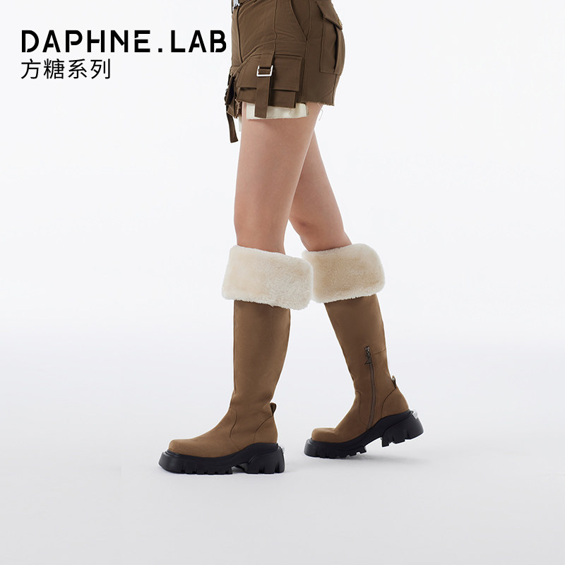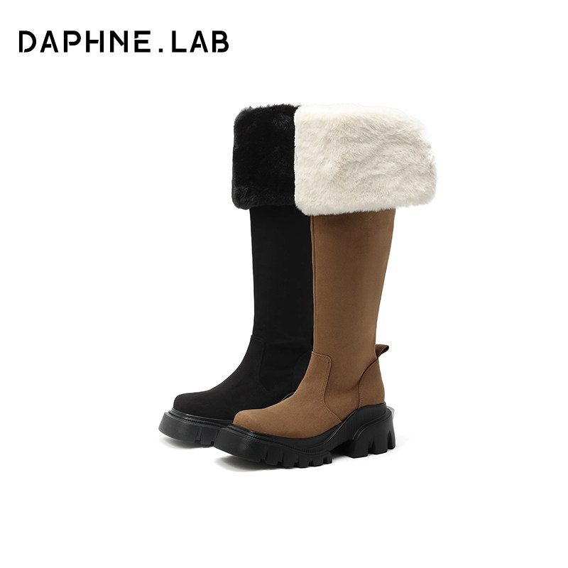 DAPHNELAB达芙妮方糖过膝靴女2两穿式加绒毛毛靴长筒靴