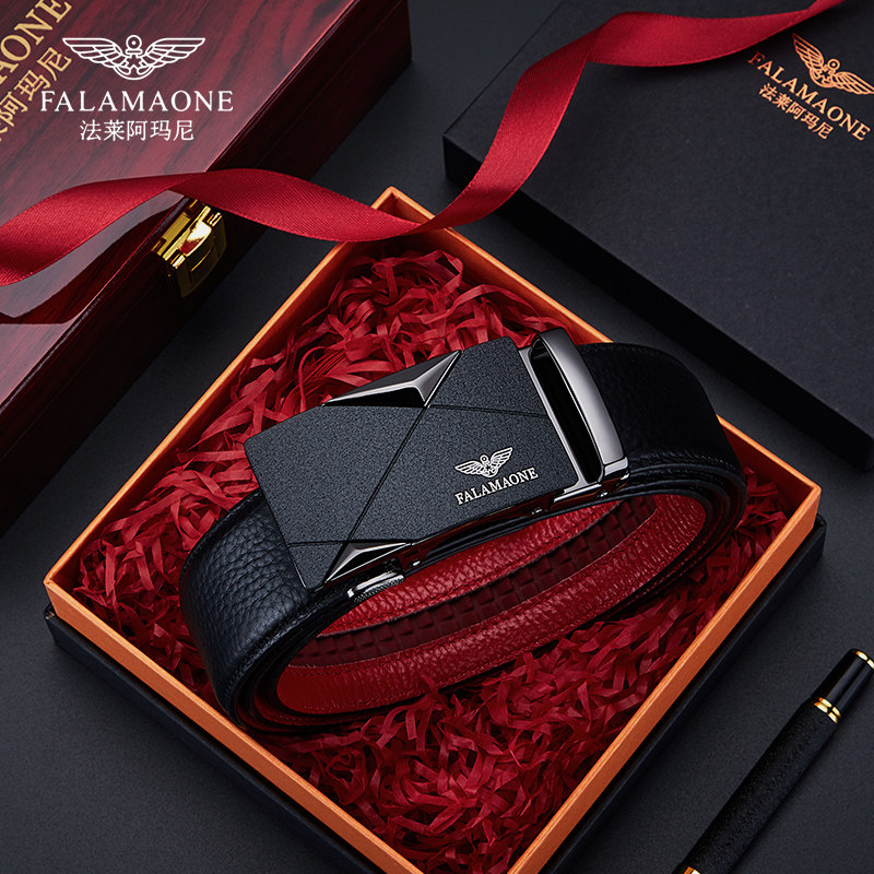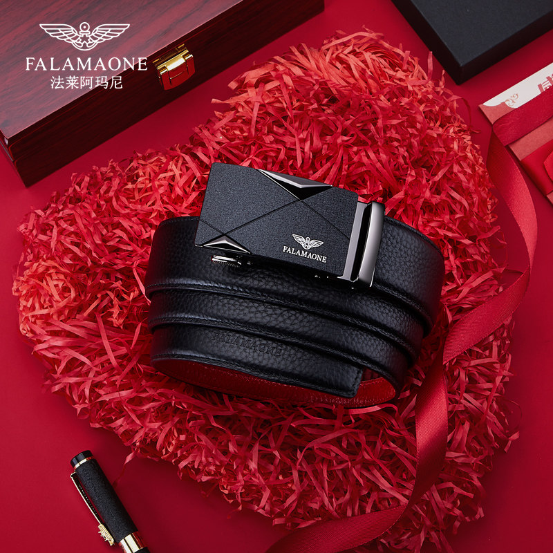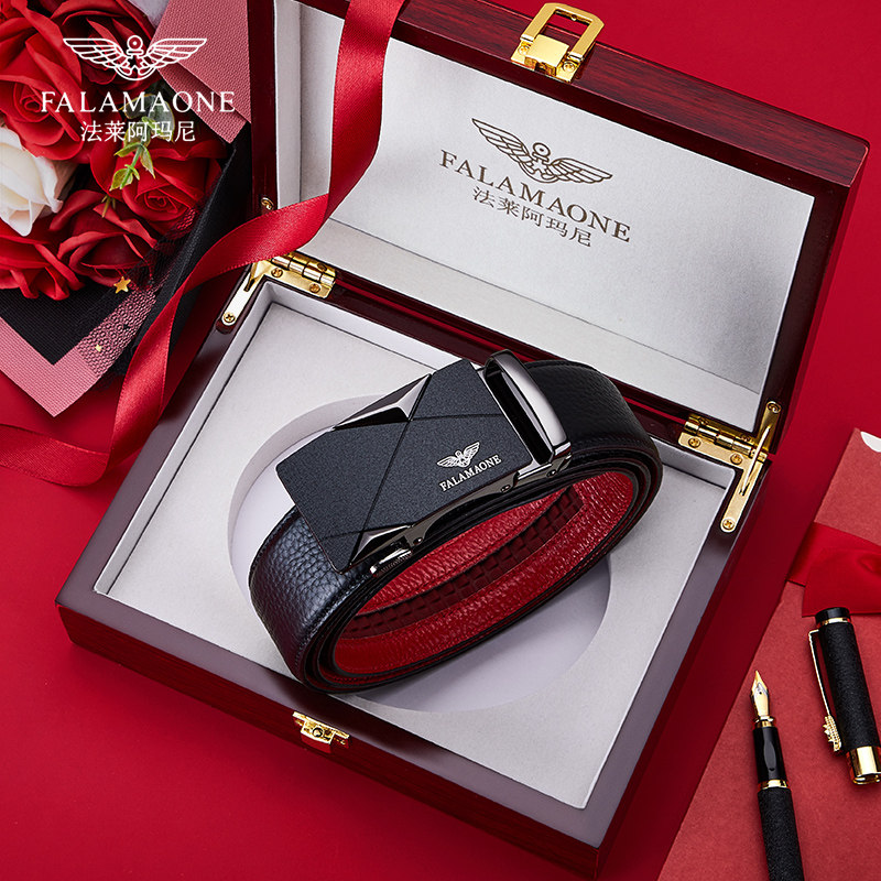 法莱阿玛尼旗舰店皮带本命年红腰带属蛇真皮男款裤带红色2025蛇年