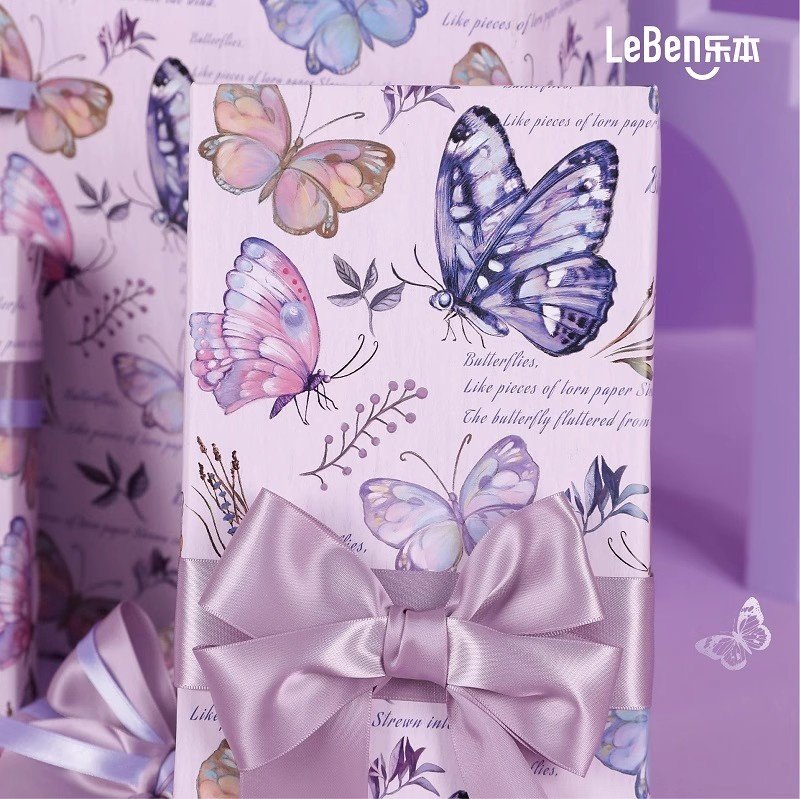 乐本·轻轻蝶梦礼物包装纸浪漫紫色蝴蝶包书皮纸生日礼品纸少女心仪式感花束打包纸手账素材纸材料超大尺寸