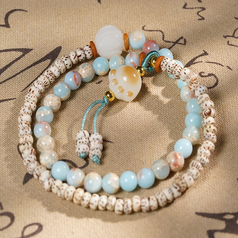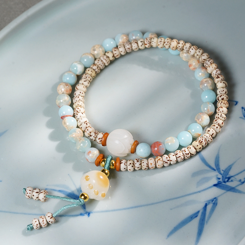 星月菩提双圈DIY手链手串文玩男女简约民族风国潮好运莲蓬手饰