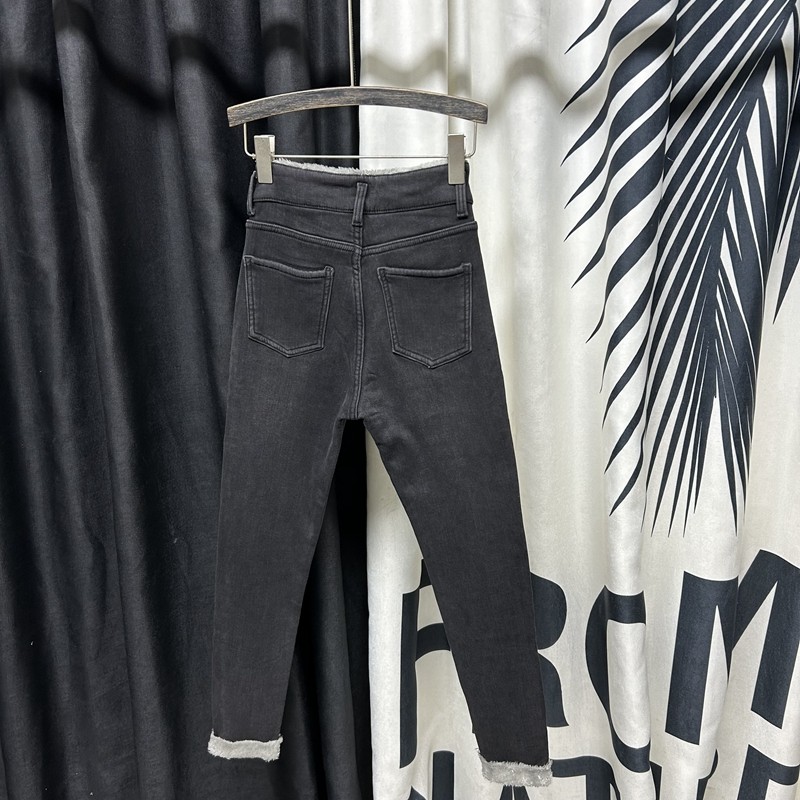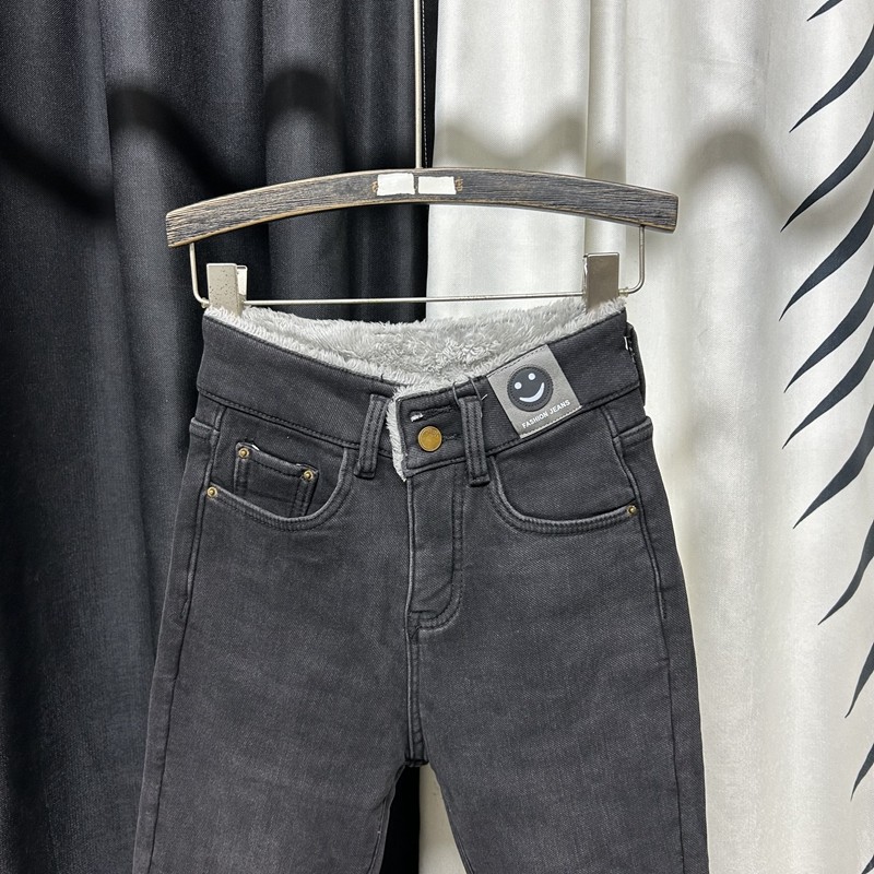 黑灰色高腰加绒铅笔小脚牛仔长裤