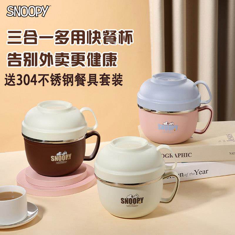 史努比泡面 面碗304不锈钢食饭堂打饭盒学生宿舍带盖子手柄餐具便