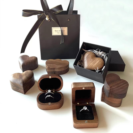 戒指盒子结婚胡桃木耳钉复古求婚钻戒盒对戒婚戒收纳礼盒木森送人