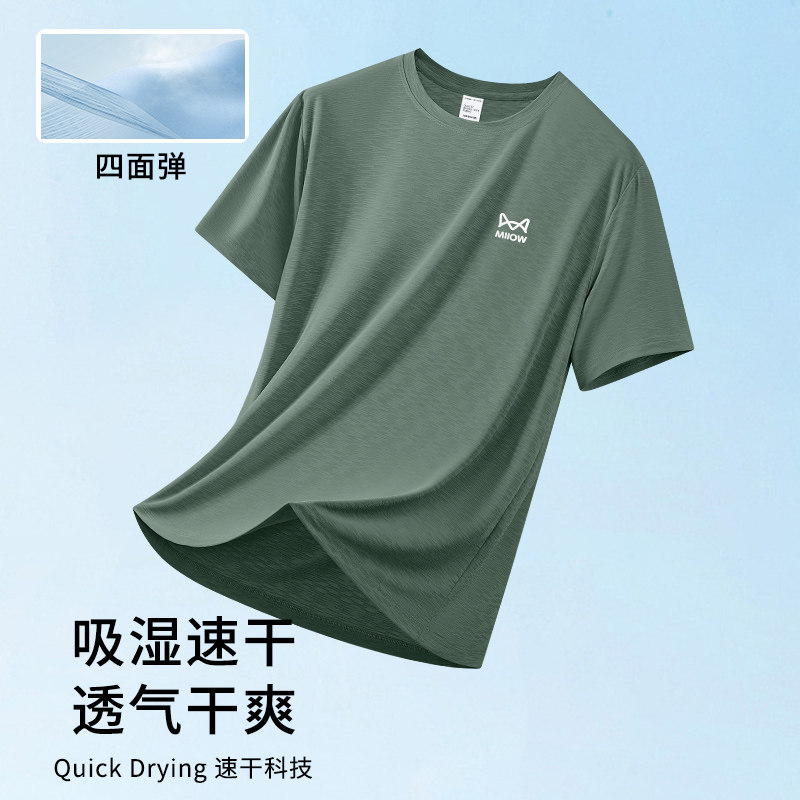 猫人冰丝凉感透气竹节纹理短袖t恤男士2026新款夏季运动速干体恤