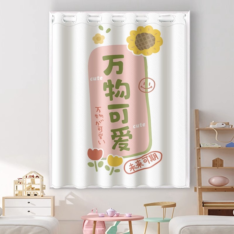 网红创意儿童房卧室小窗帘短免打孔安装全遮光卫生间浴室飘窗遮阳