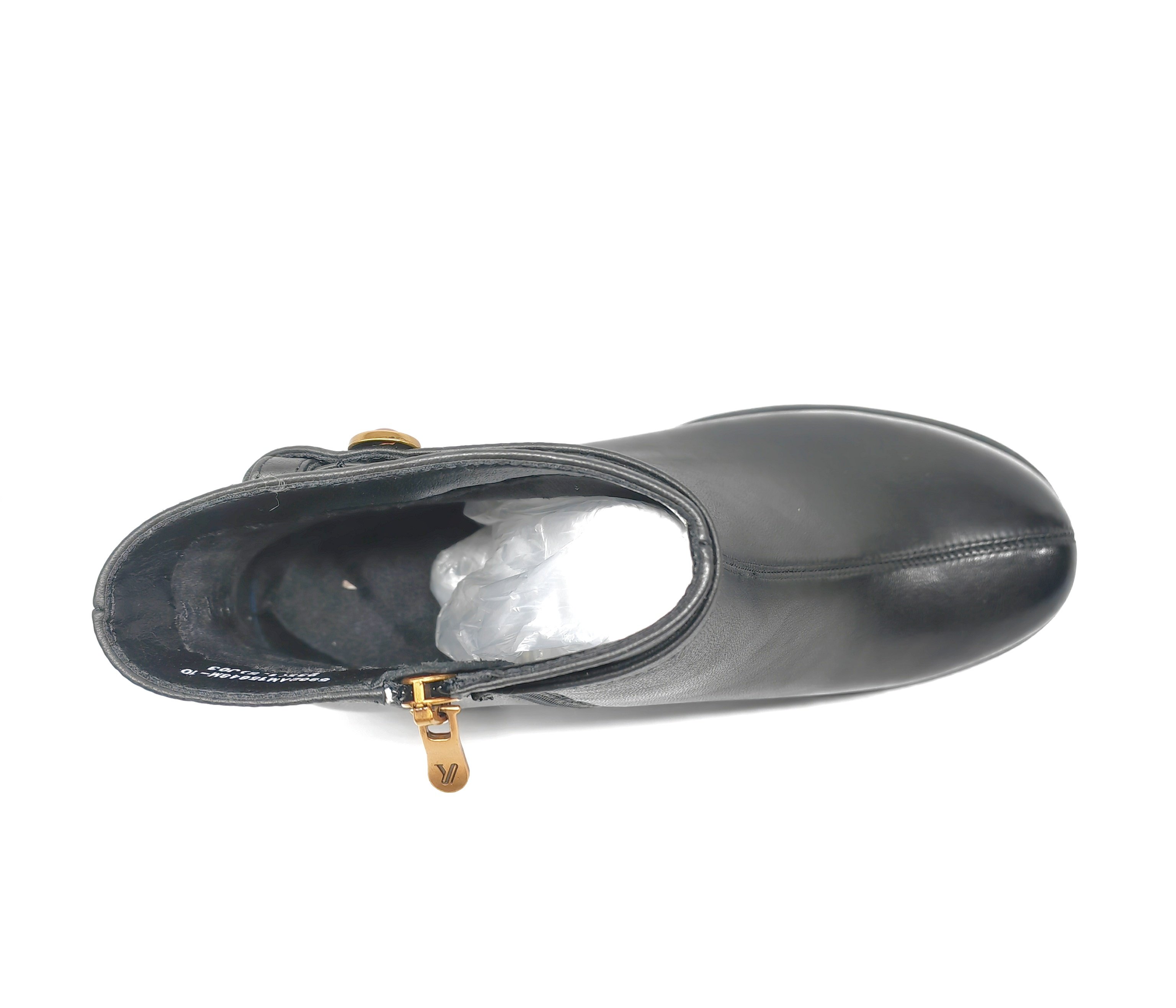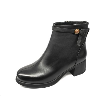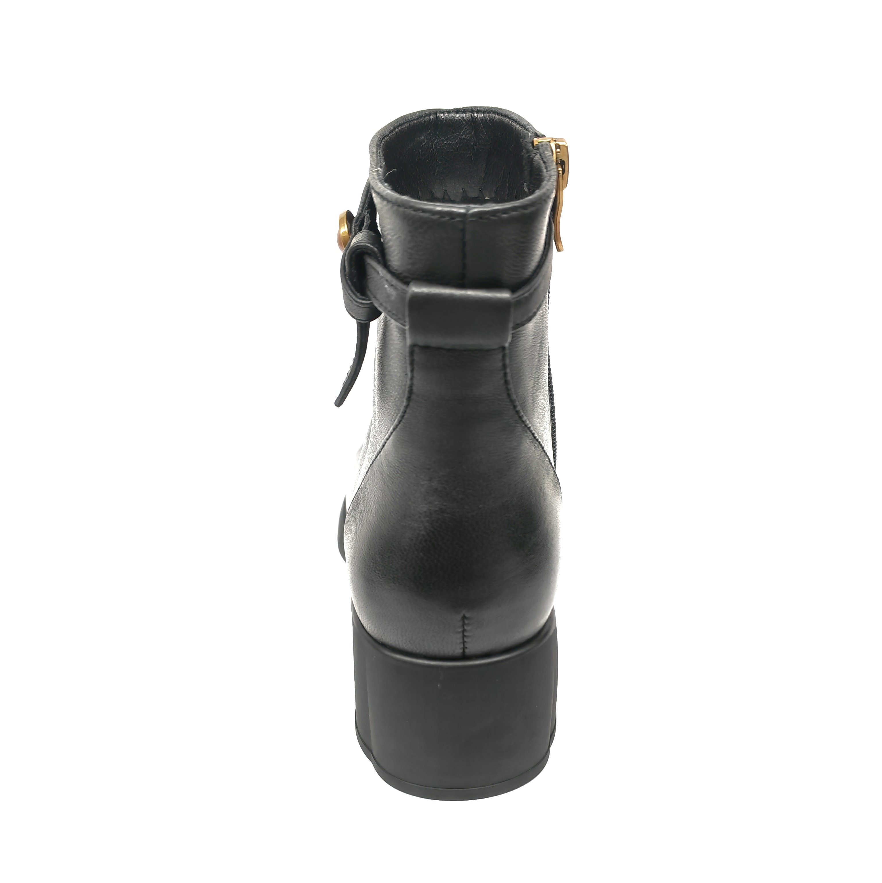 意尔康女鞋2025冬季羊皮女靴时尚百搭高跟鞋粗跟短靴5862AM15648M