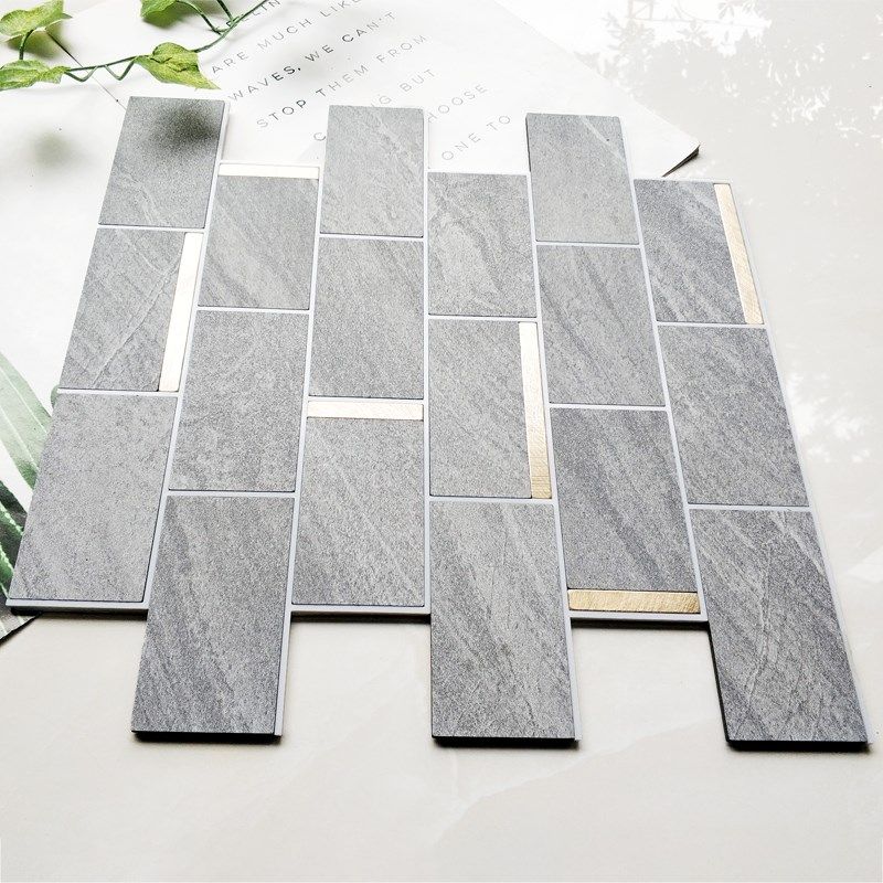 现代石材大理石纹理铝塑板自粘马赛克墙贴长条形浴室客厅背景装饰