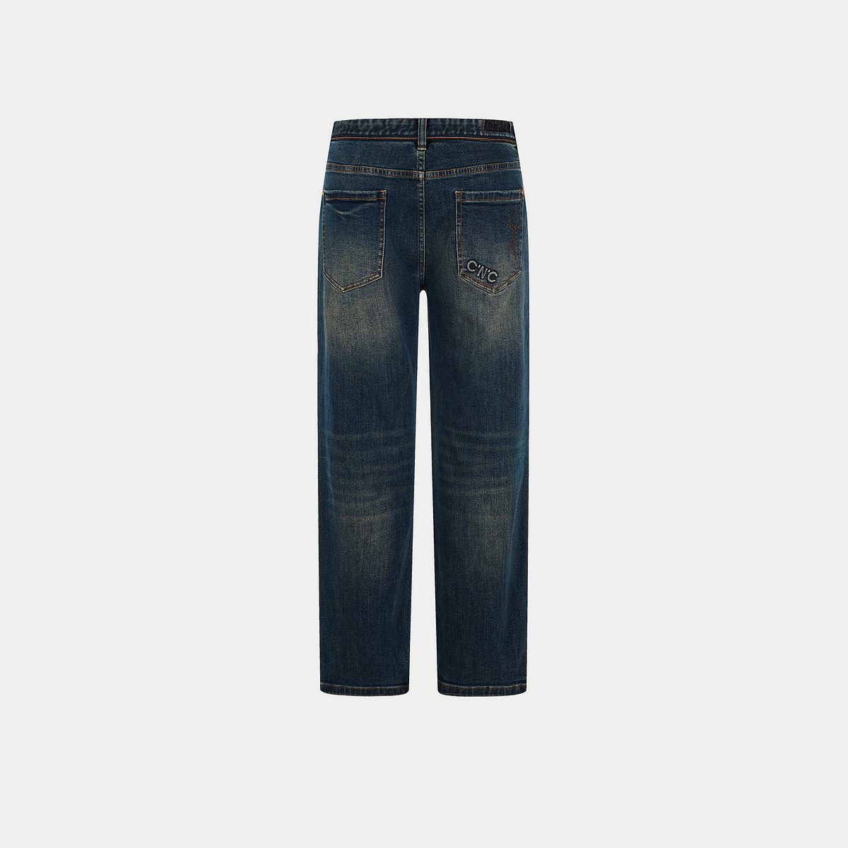 CNC男装秋冬新款牛仔裤男款蓝色水洗直筒宽松复古休闲长裤