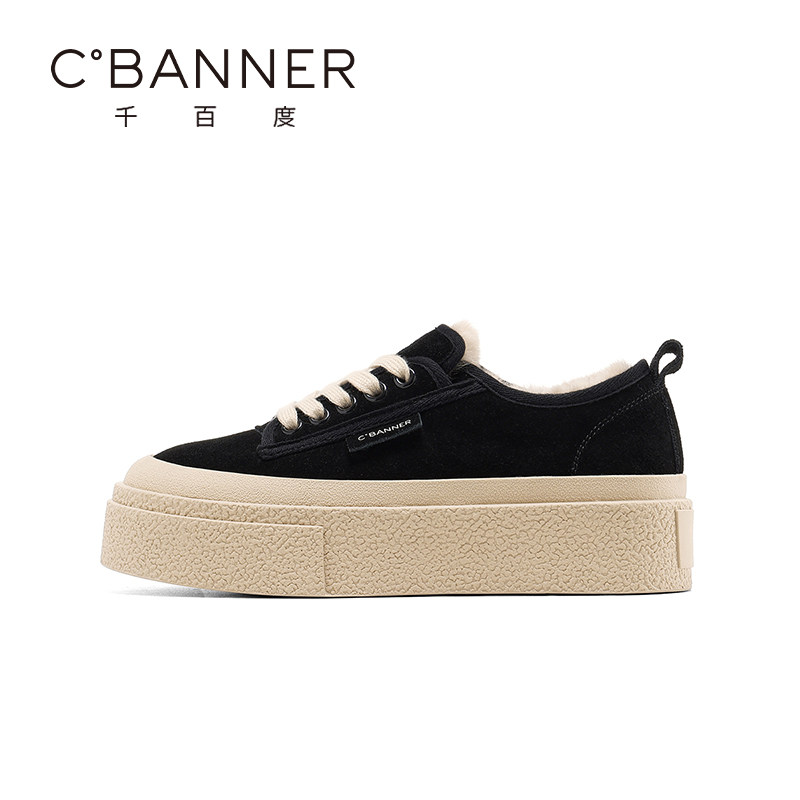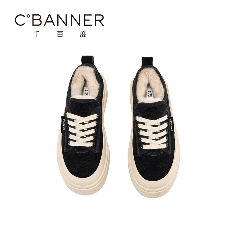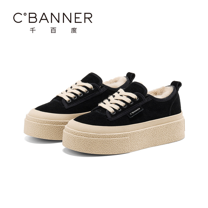 千百度休闲棉鞋女冬季新款加绒加厚厚底帆布鞋保暖松糕板鞋女