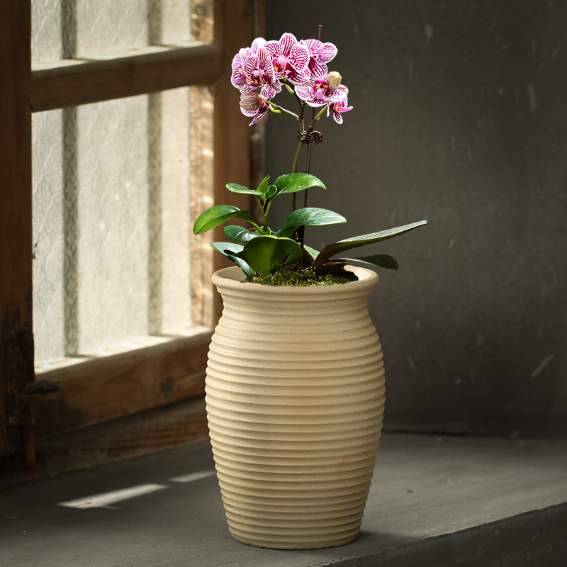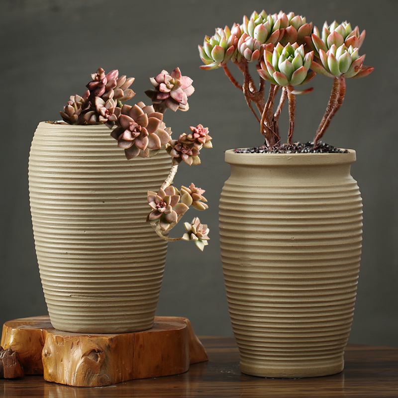 粗陶透气素烧多肉花盆陶瓷简约创意螺纹大小口径盆栽绿植多肉老桩