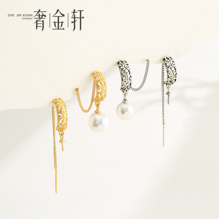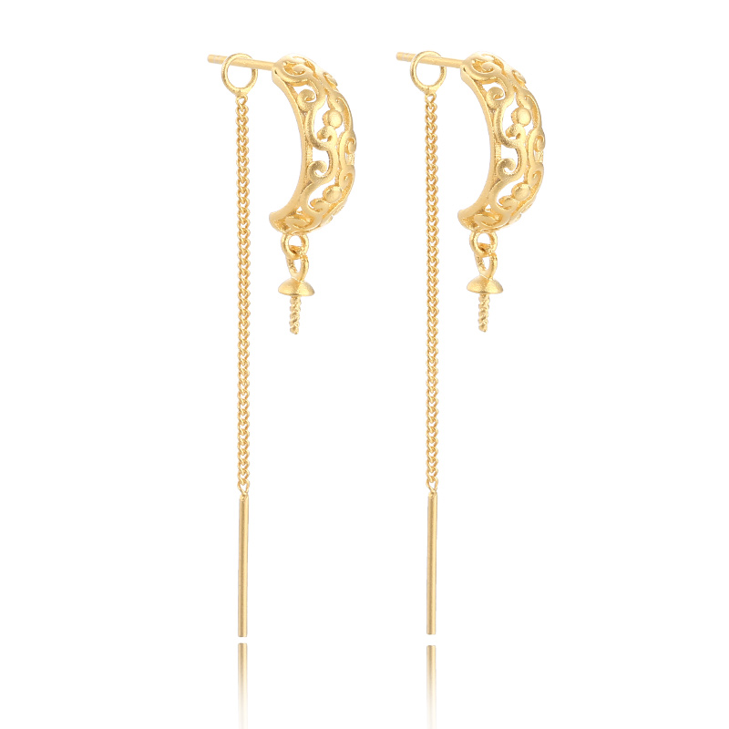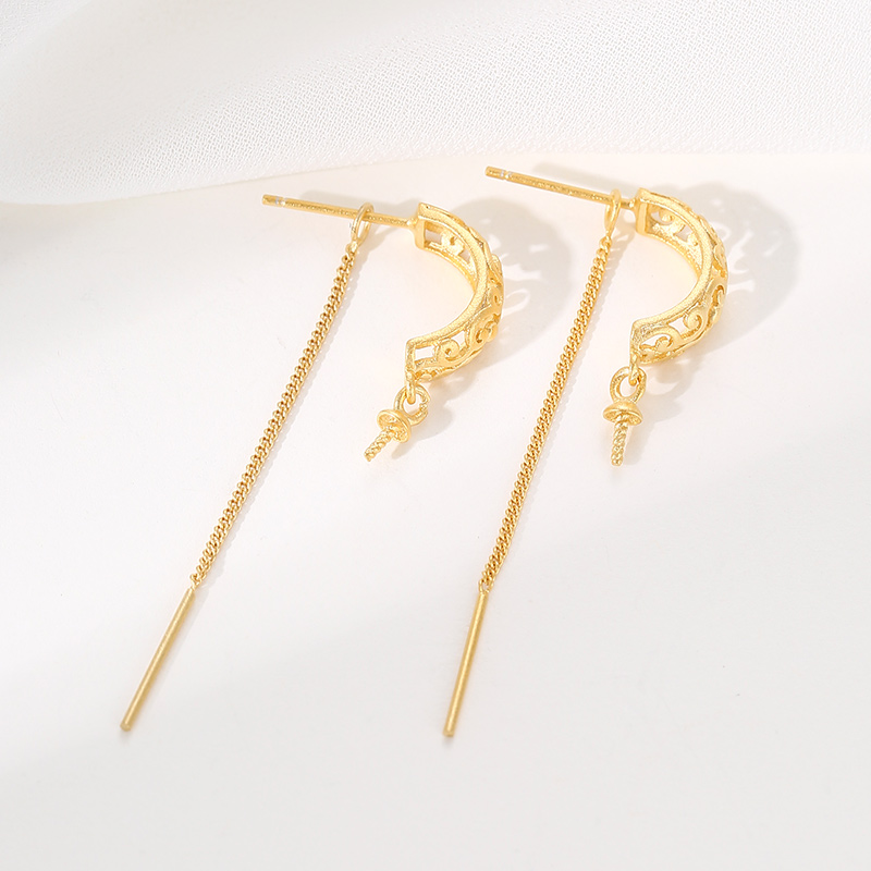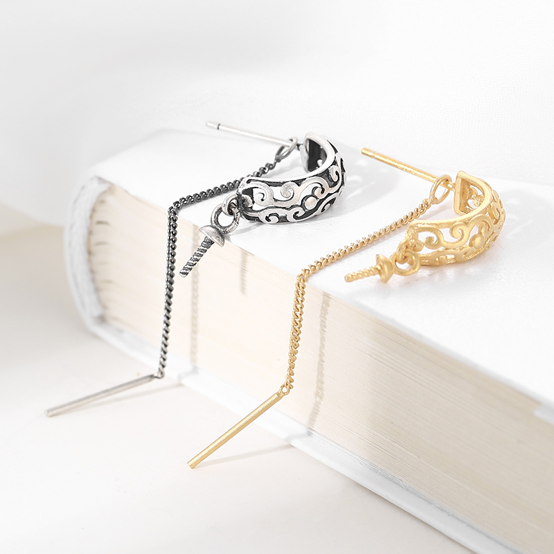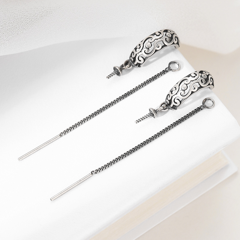 925纯银复古耳环空托女diy珍珠耳钉耳坠空托蜜蜡翡翠碧玉耳钩空托