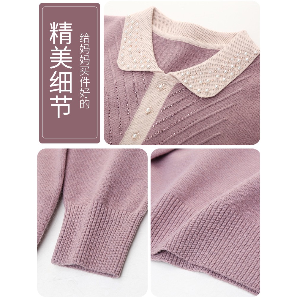 妈妈洋气针织打底小衫中年女春装长袖上衣中老年春秋遮肚子毛衣薄