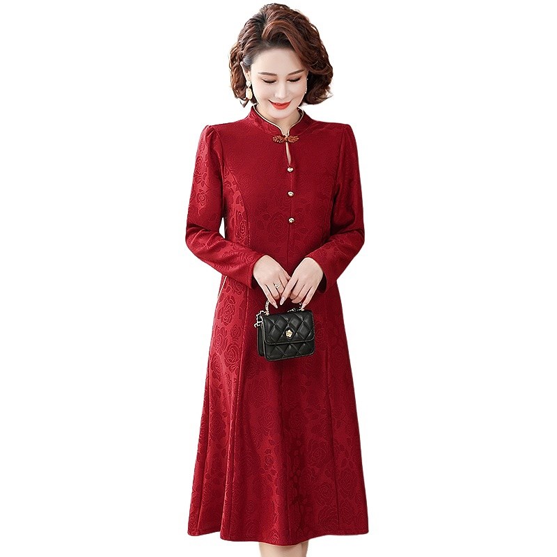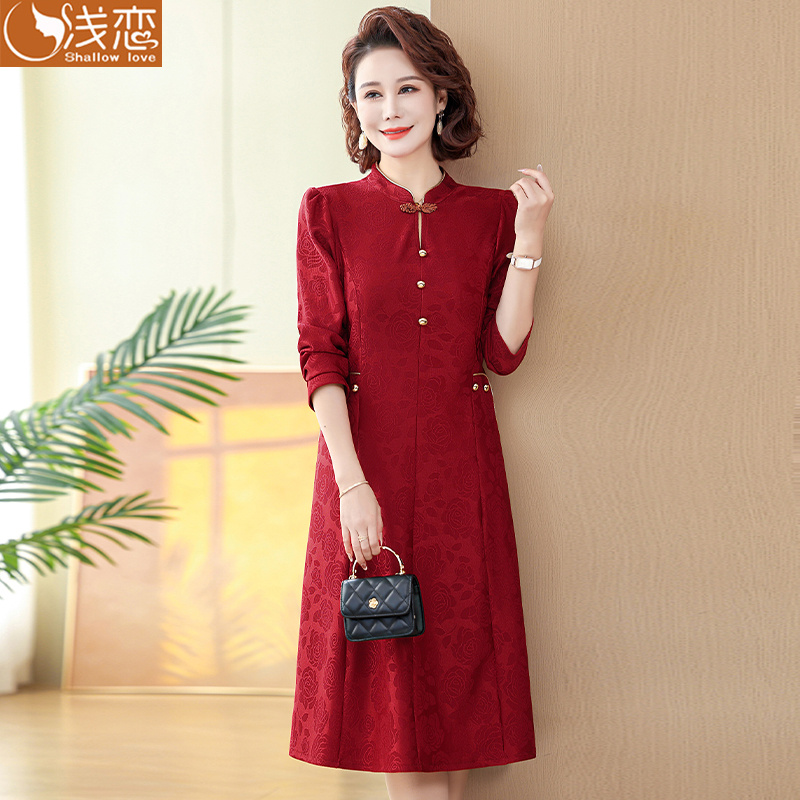 中年妈妈参加婚宴旗袍连衣裙中老年女装春装婆婆结婚礼服高贵喜服