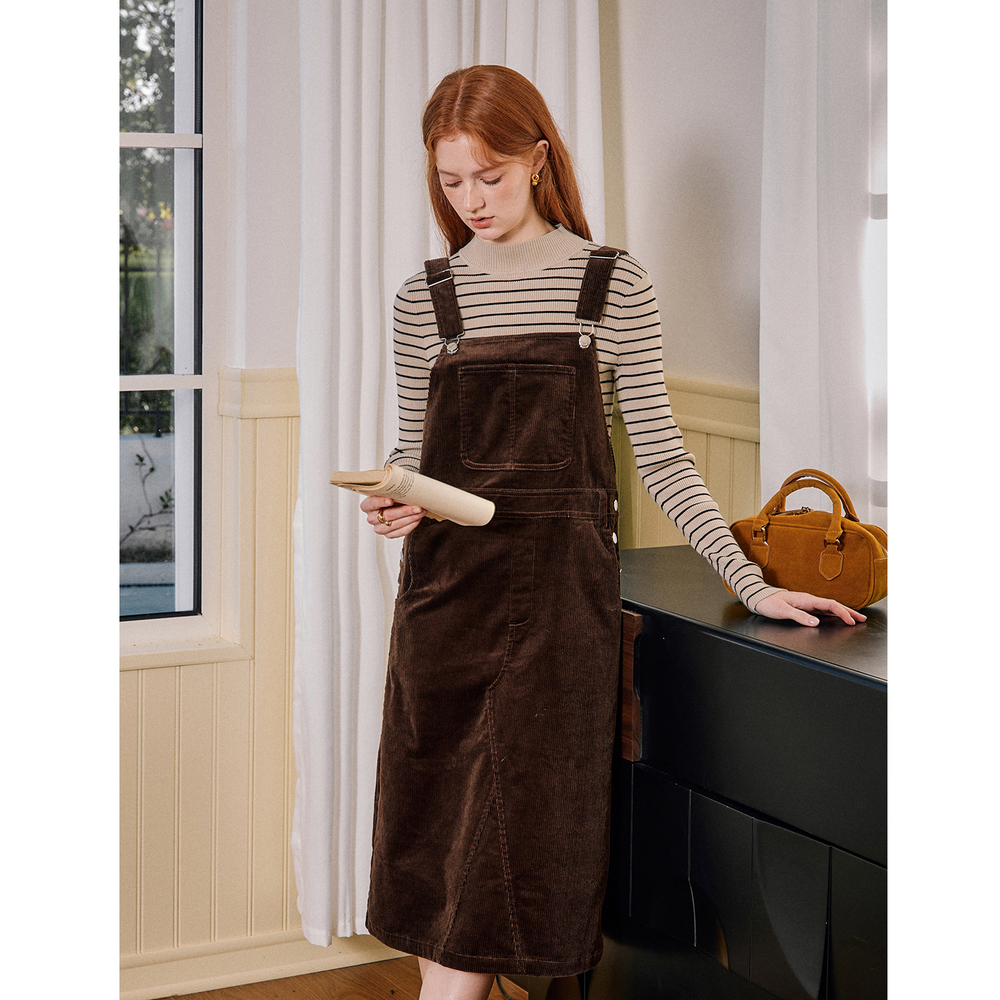 库恩玛维纯色灯芯绒背带裙女秋冬