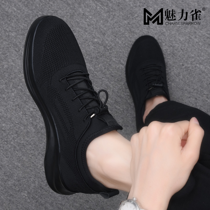 男鞋秋季2025新款运动鞋黑色飞织网面透气百搭鞋子男士休闲鞋春款