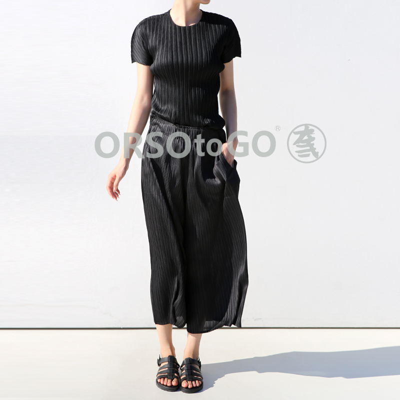 ORSOtoGO阔腿女裤大码九分百褶裤