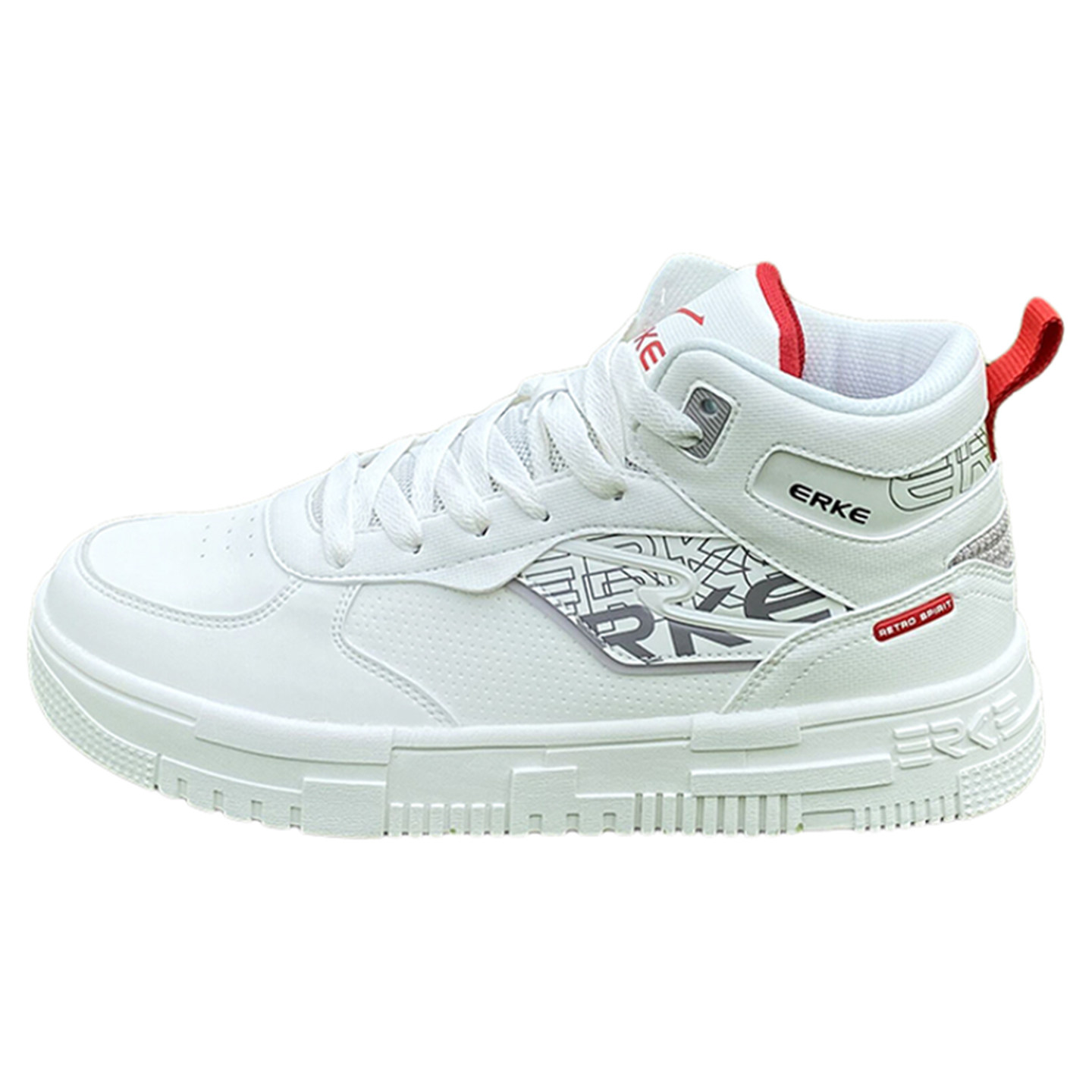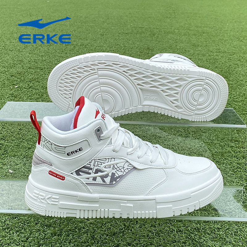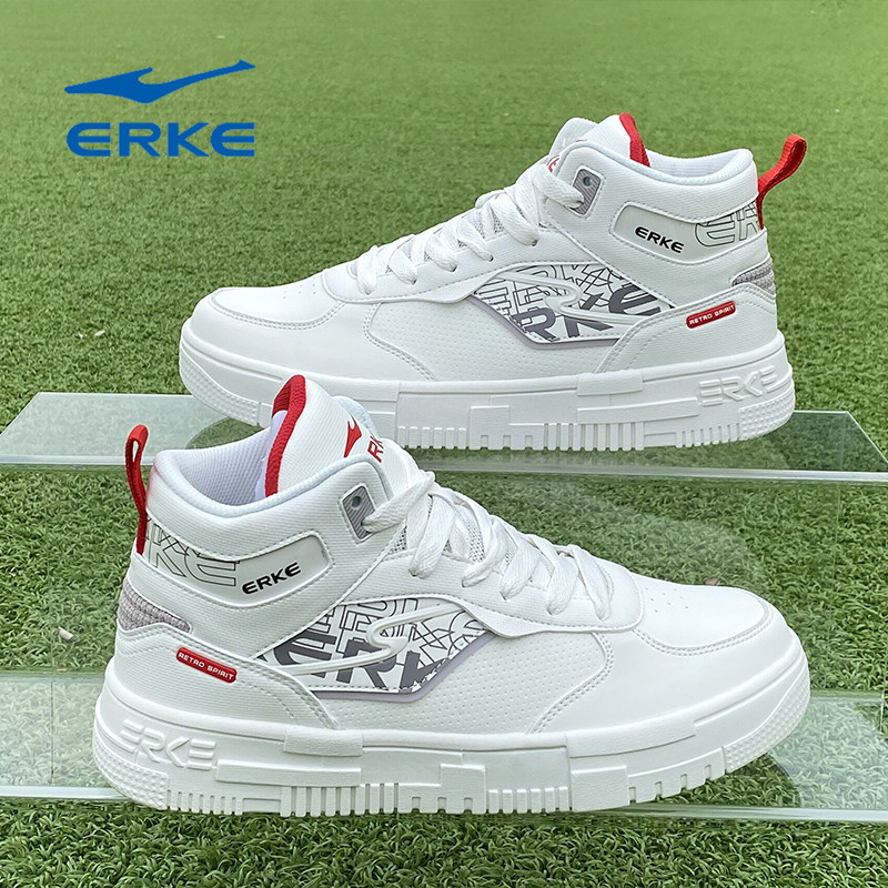 【电池熊猫】鸿星尔克高帮板鞋秋冬季新款皮面防滑耐磨百搭男款