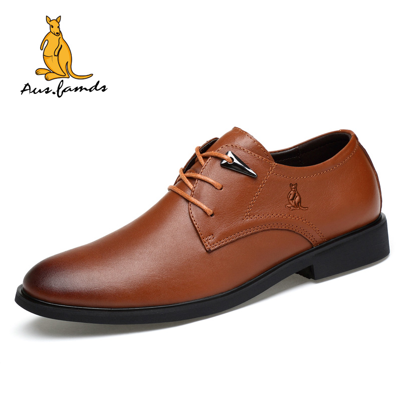 AUSFAMDS/澳洲名袋鼠夏季男士休闲皮鞋小码大码真皮商务正装男鞋