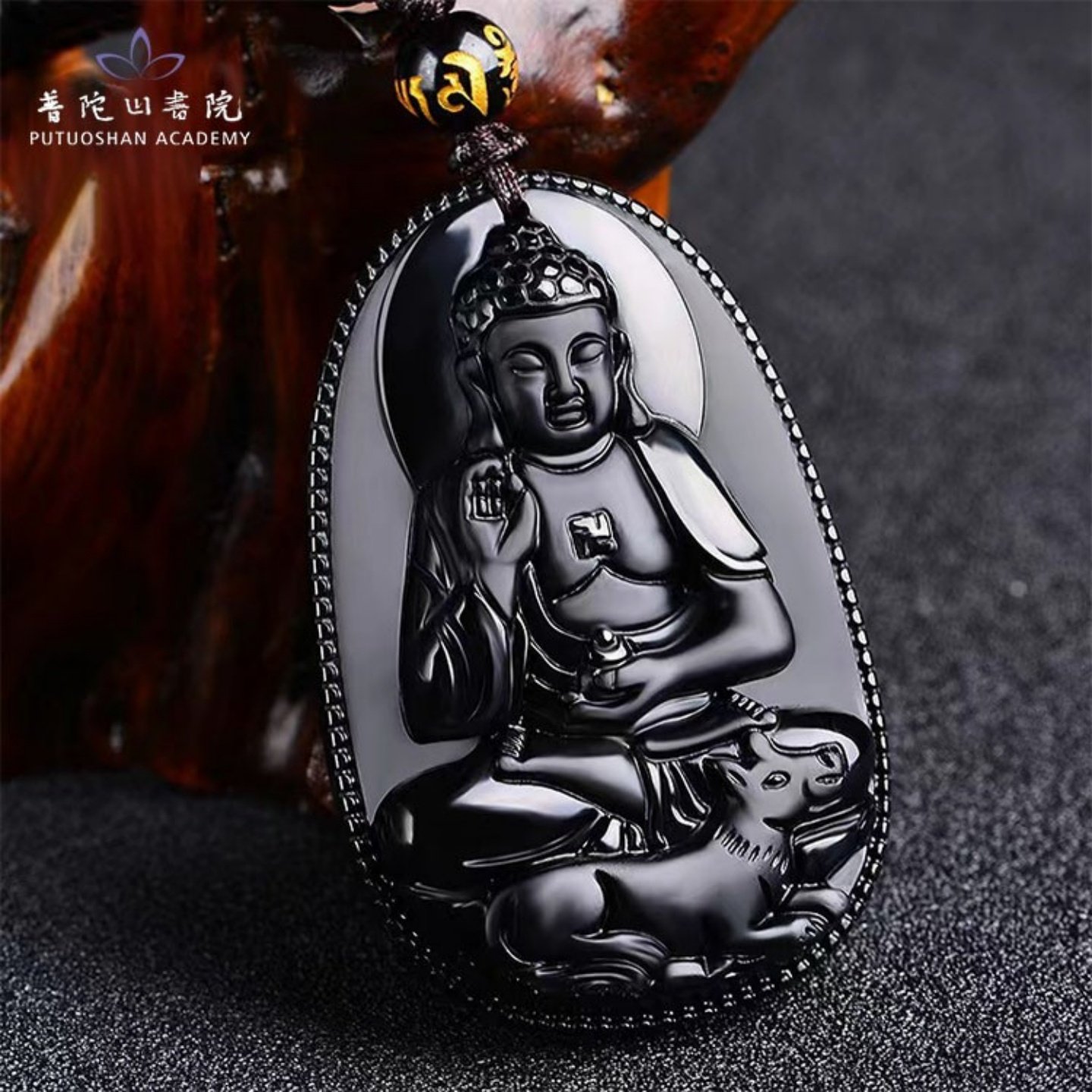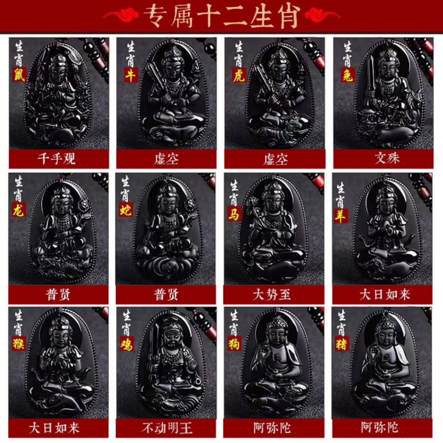 普陀山天然黑曜石本命佛吊坠十二生肖本命年项链蛇虎猴猪龙挂件