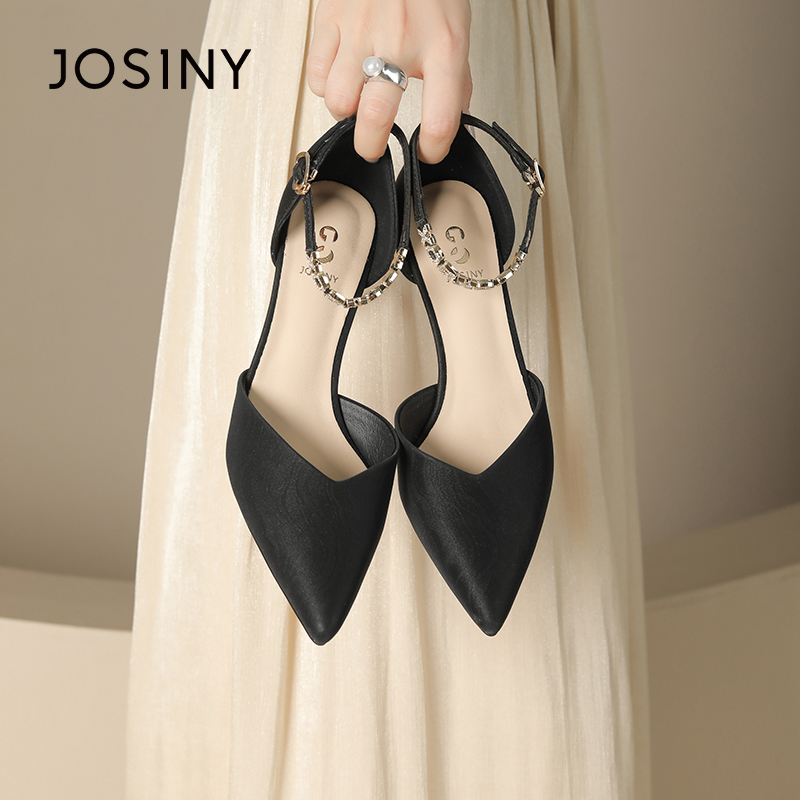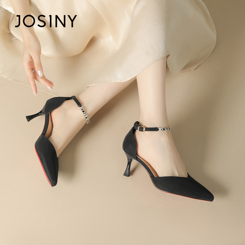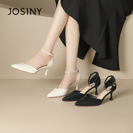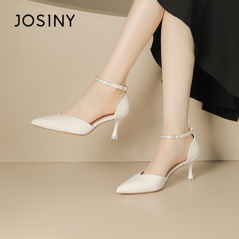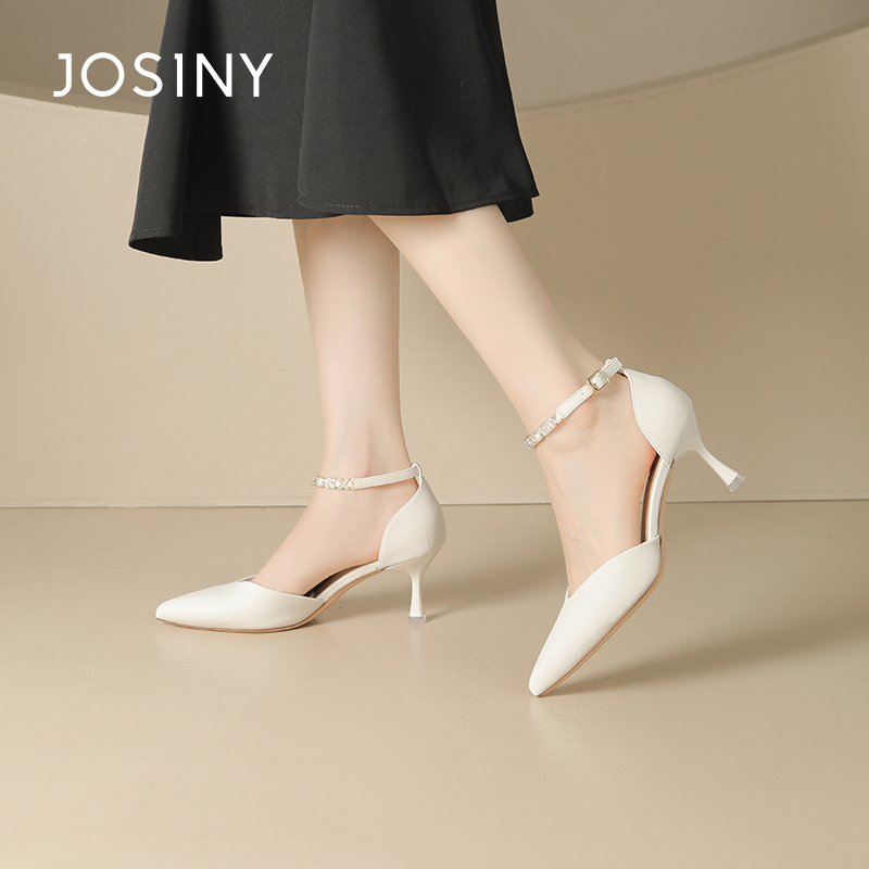 卓诗尼女单鞋撤柜正品春秋款尖头中空闪耀钻链小高跟细跟浅口时尚