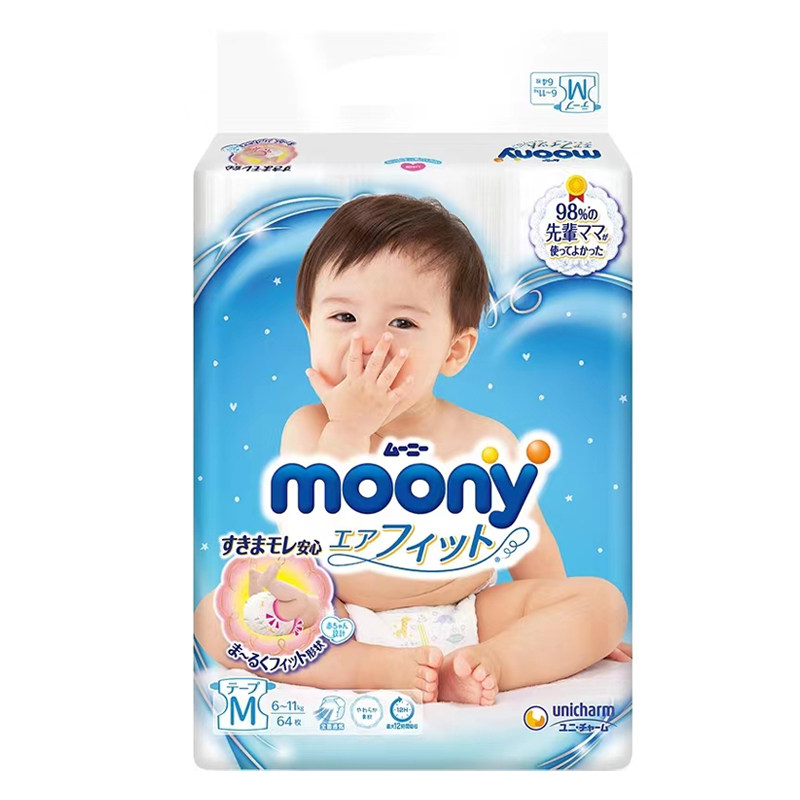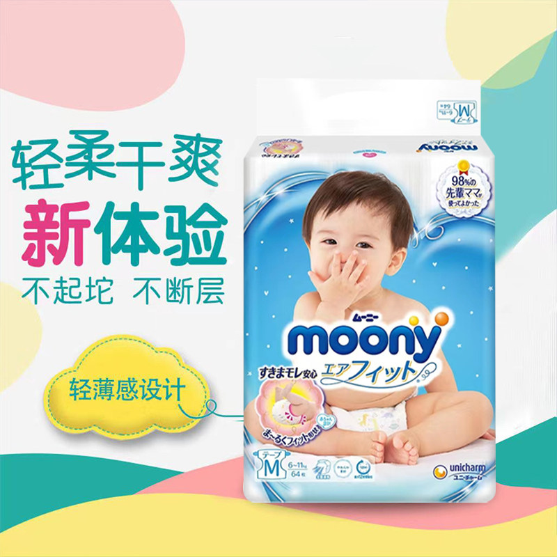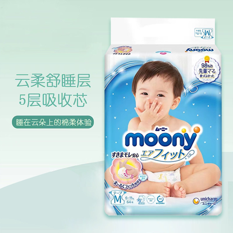 【正品保证】日本原装进口moony尤妮佳纸尿裤m64片宝宝m号尿不湿