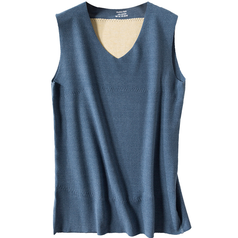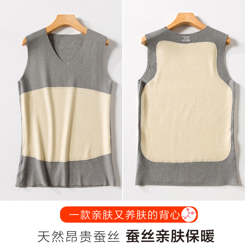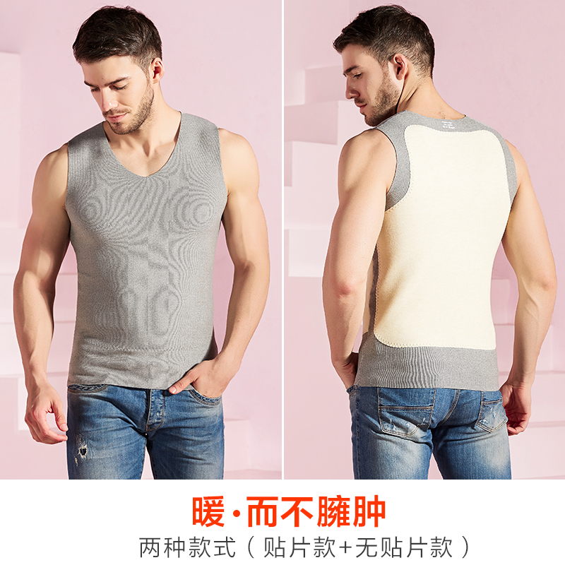 无痕德绒保暖内衣男士背心加绒加厚蚕丝贴片自发热打底上衣秋冬季