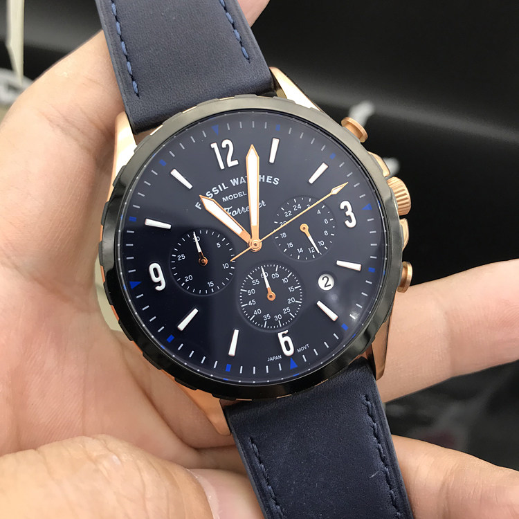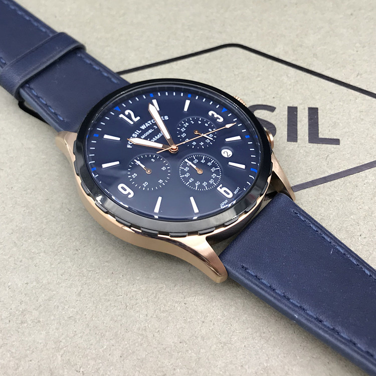 现货FOSSIL化石手表轻奢时尚真皮三眼计时商务休闲石英表男表