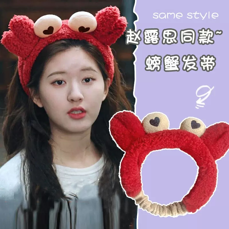 可爱发箍敷面膜洗脸专用头箍女红色新年发卡秋冬新款螃蟹发捆头饰