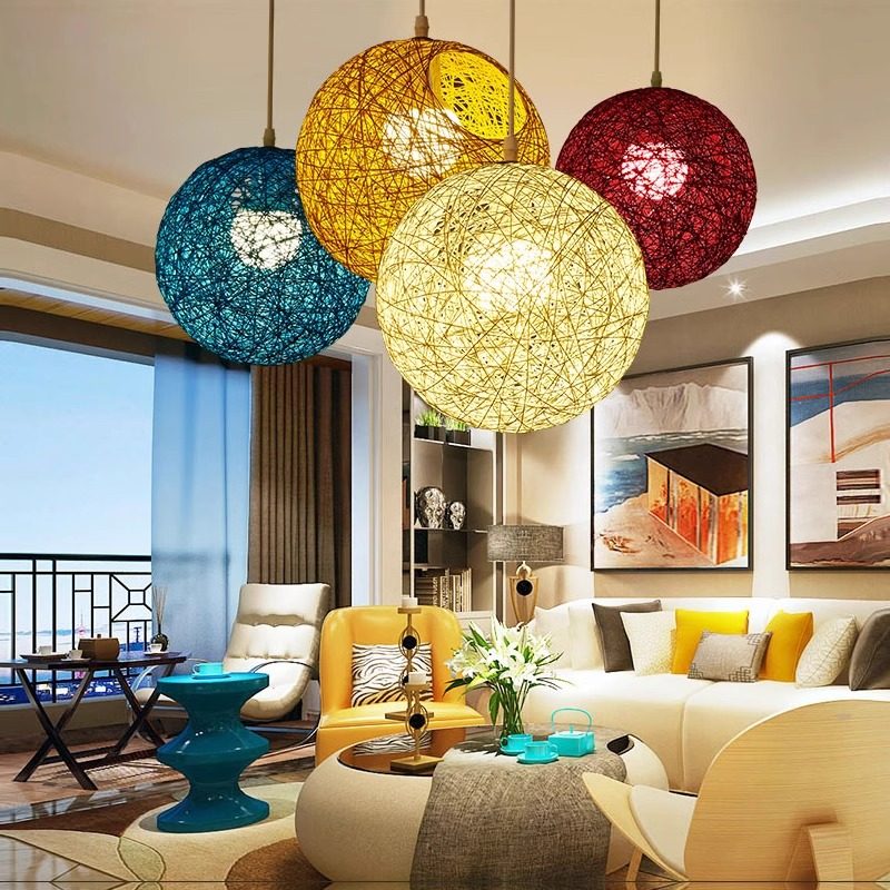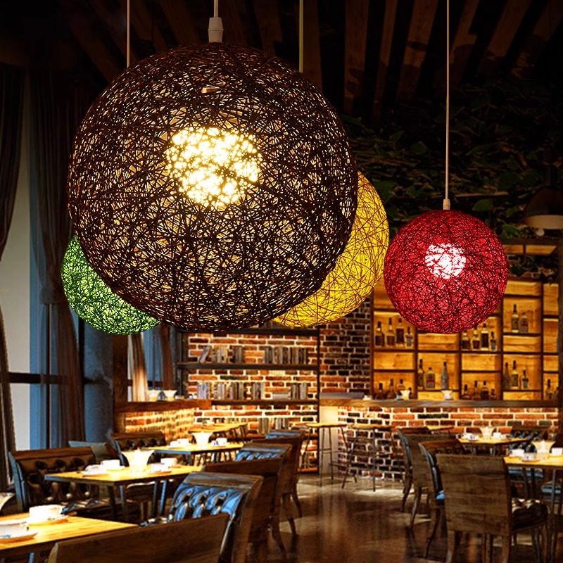 侘寂风手工编织麻球吊灯日式餐厅菜馆民宿酒吧店铺商用藤艺球形灯