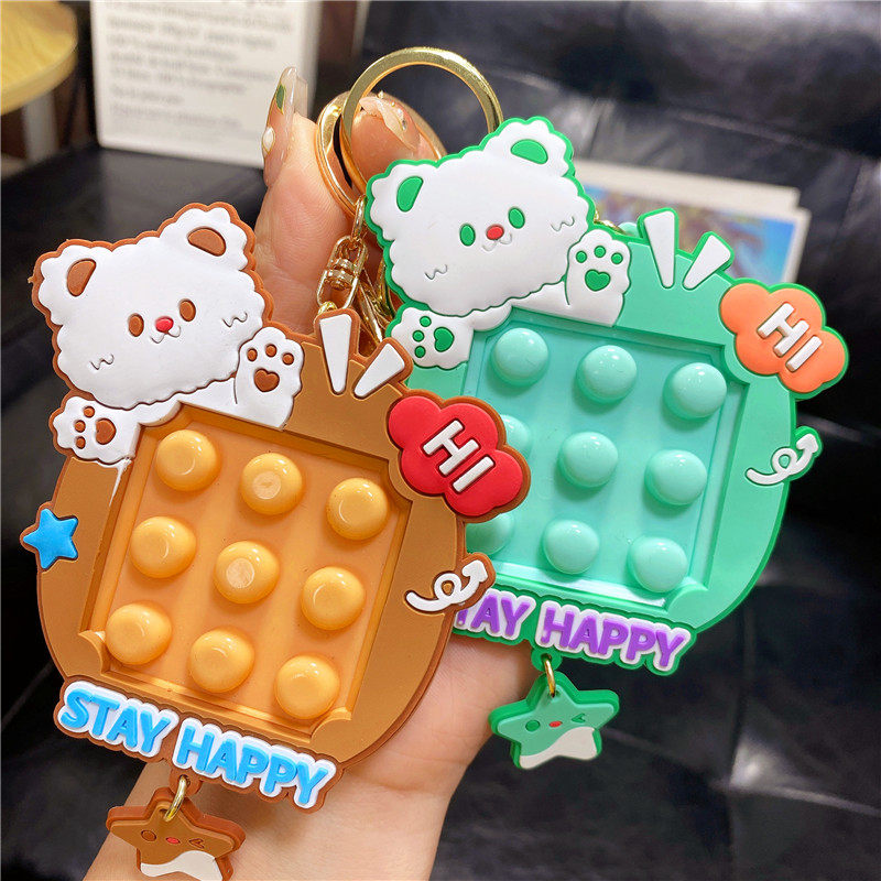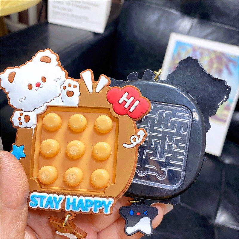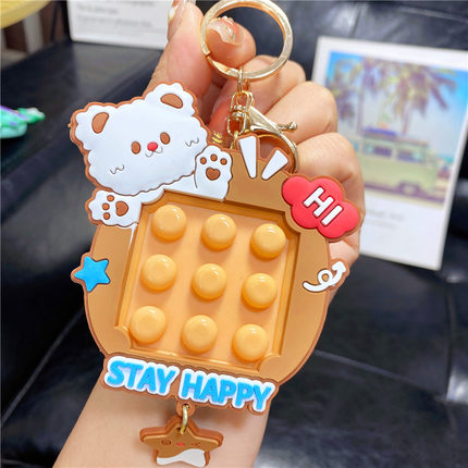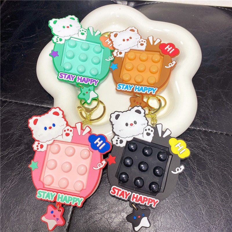 创意可爱棉花小熊解压捏捏乐钥匙扣迷宫按压泡泡机钥匙链背包挂件