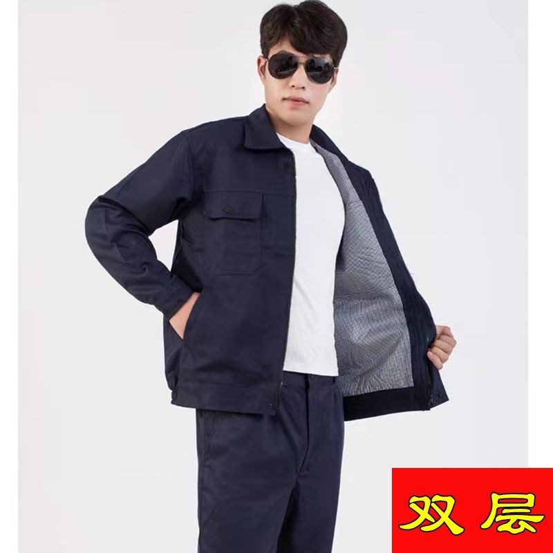 春秋双层工作服套装男劳保服内衬加厚上衣汽修厂服工地工装工程服