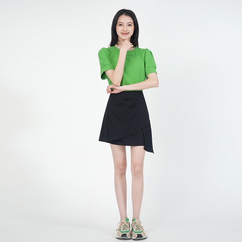 WEWE/唯唯夏季新品女装高腰特色A字显瘦半身裙不规则下摆