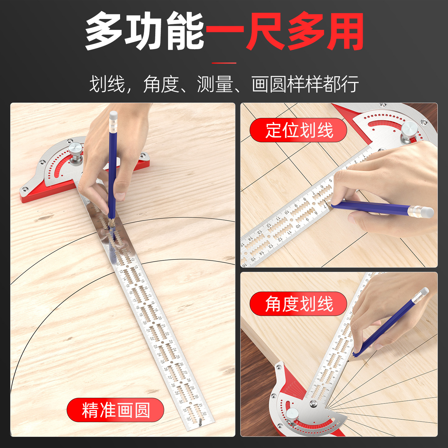 不锈钢边缘尺多功能角度尺高精度木工尺划线定位圆弧测量活动角尺