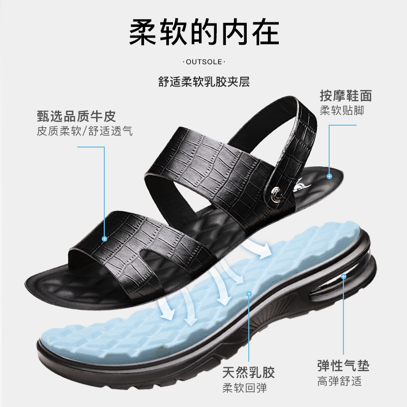 凉鞋男真皮夏季2021新款韩版潮流气垫凉拖鞋男软底休闲沙滩鞋男潮