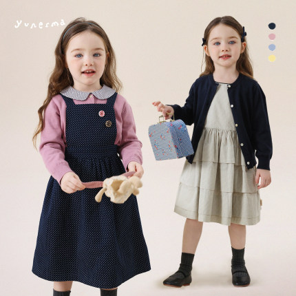 允儿妈女童100支长绒棉韩系花边针织开衫 宝宝春秋毛衣儿童上衣潮