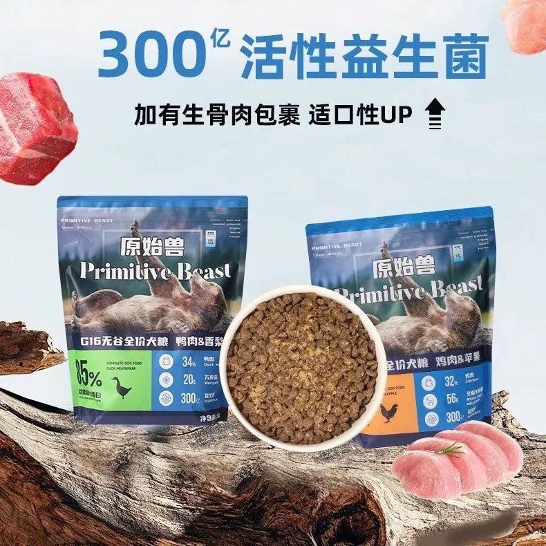 原始兽狗粮全价无谷鸡肉鸭肉幼成犬祛泪痕1.5kg10kg泰迪比熊