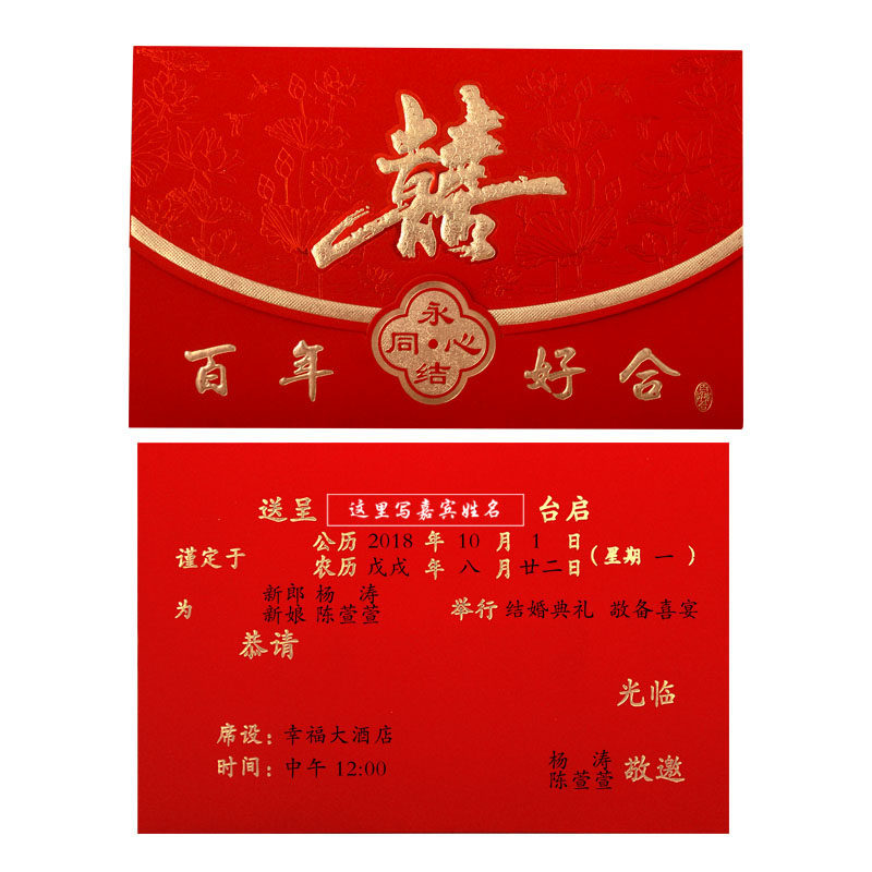结婚请帖创意2024婚礼请柬个性网红喜帖中国风婚庆邀请函定制打