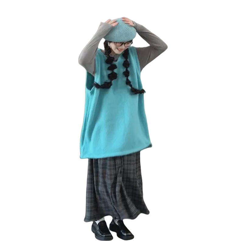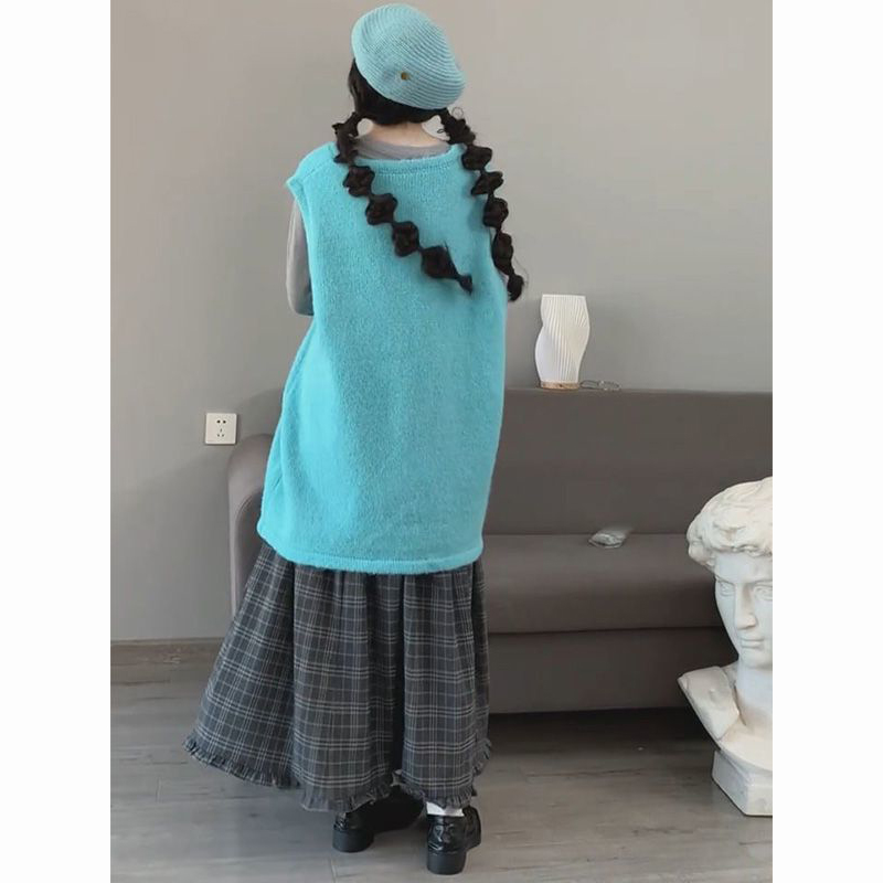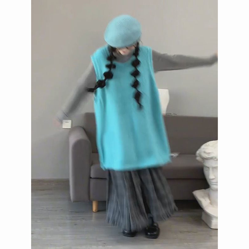 韩系慵懒松弛感显白宽松针织背心马甲毛衣搭配长袖打底衫两件套装