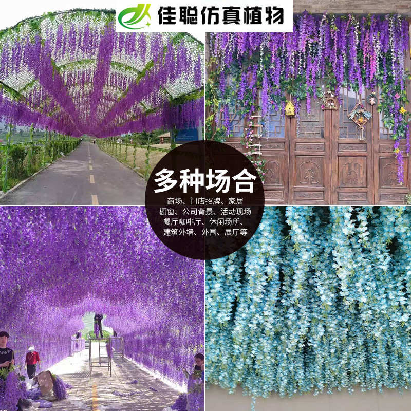 仿真紫藤花加密 花廊会场婚礼装饰用花豆花枝 仿真紫藤花藤假花串