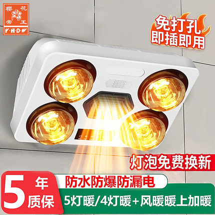 樱花帝王浴霸灯泡取暖器卫生间风暖浴霸壁挂式浴室暖灯一体免打孔